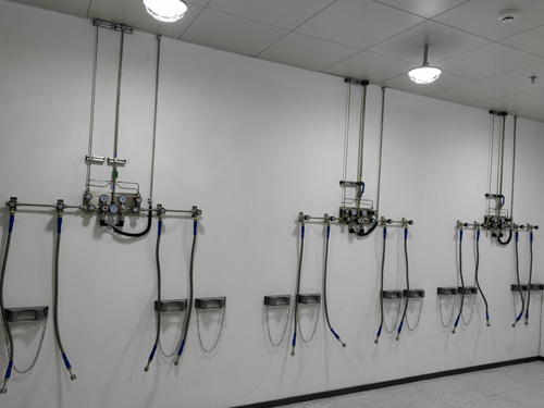 1.氣瓶間內的壓力調整開關面板與實驗所房間內的氣路數據終端當中使用的SS316LBA管使用無線連接,熱力管路內外表面晶亮度為Ra<0.4umBA級熱力管路。